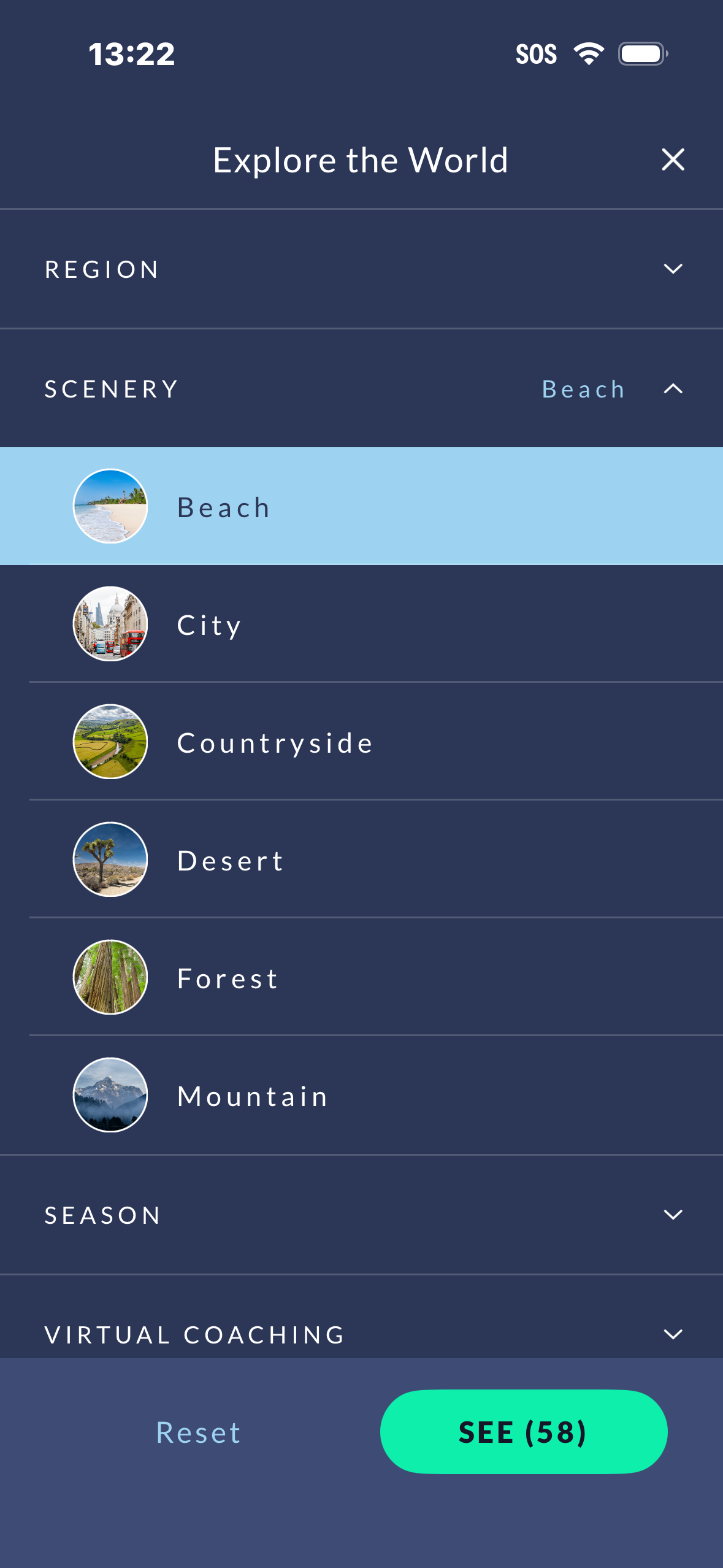 Tap the See Results button to see the matching routes. To start over, tap Clear Filters or reopen the Filter options and tap Reset to remove the filter selections.