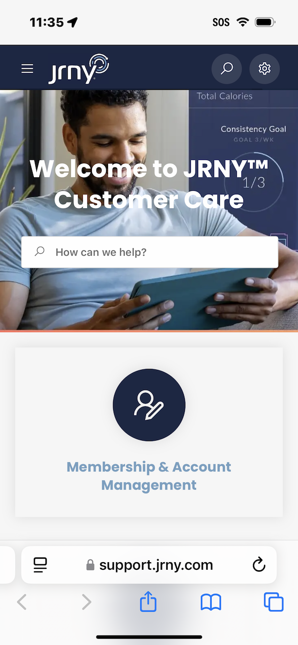 Tapping on the Support & Feedback button launches the default browser to the support.jrny.com home screen